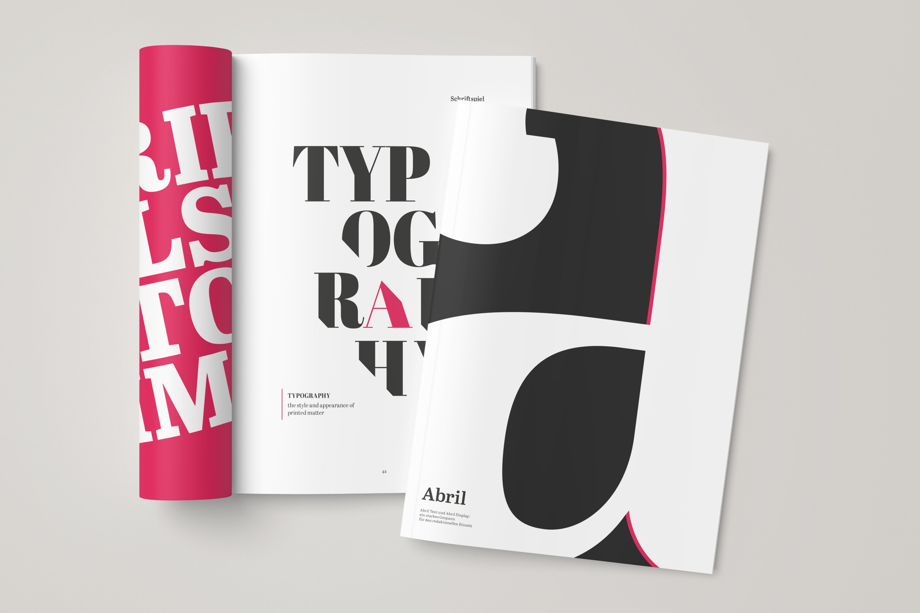 Einsatzgebiet werden an Schriften unterschiedliche Anforderungen gestellt. Während die Abril Display in großen Schriftgraden ihre Stärken ausspielt, ist die Abril Text für den Textsatz optimiert.